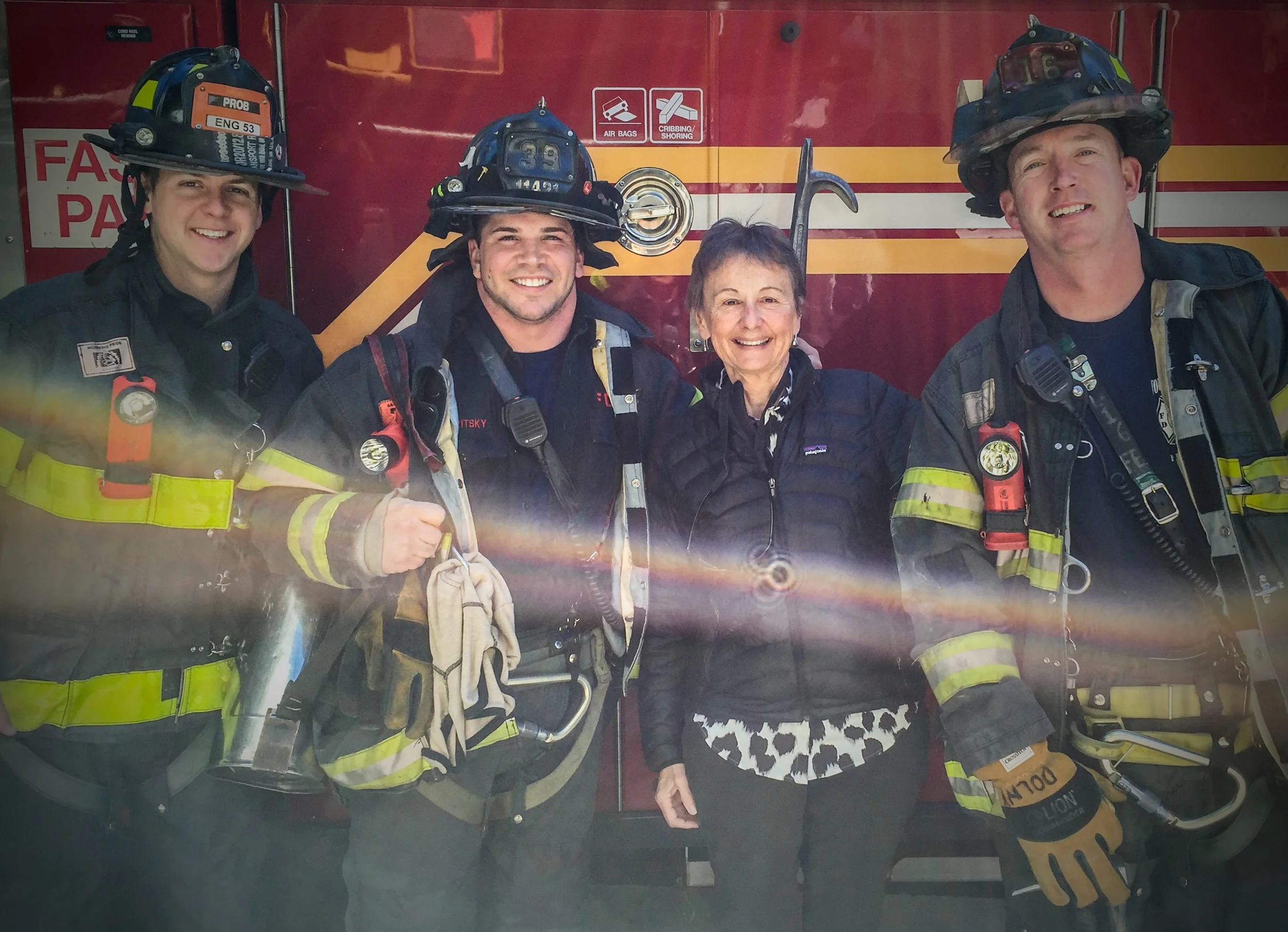 Along a nearby street, firemen were exiting a tower. I asked for a photo. They were excited, kept fighting over who would take the picture and who would be in it. As I walked off I wished them a good day, hopefully with no fires.